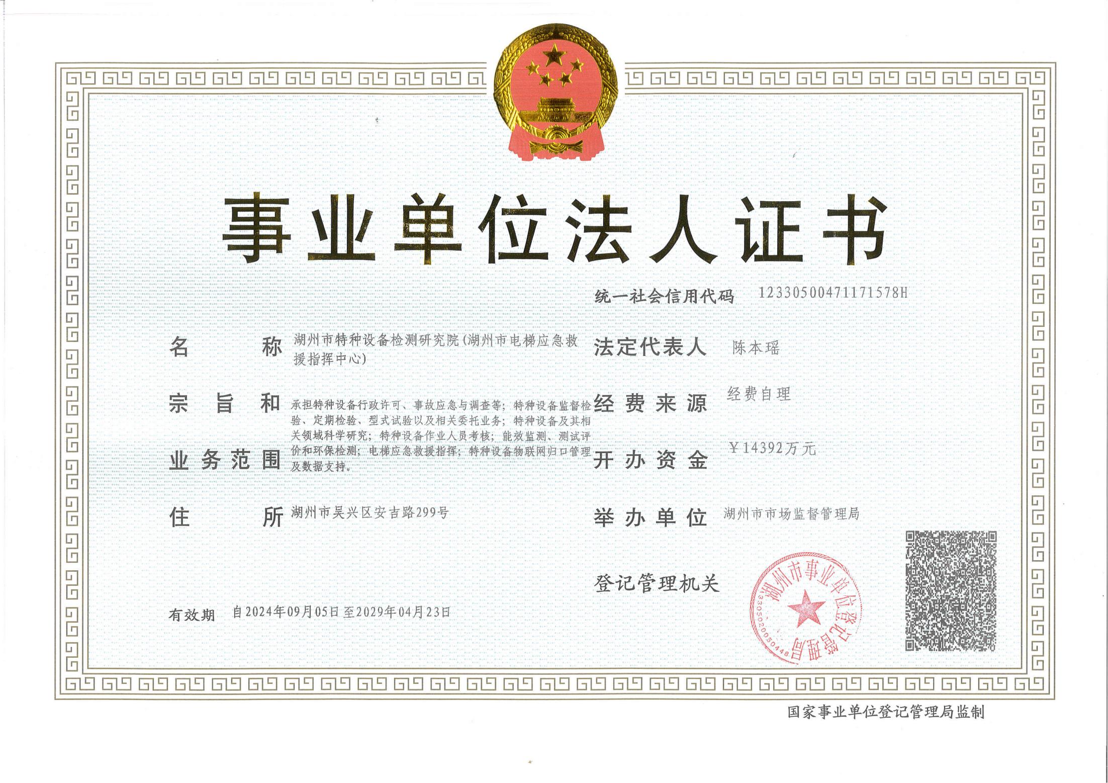 事业单位法人证书