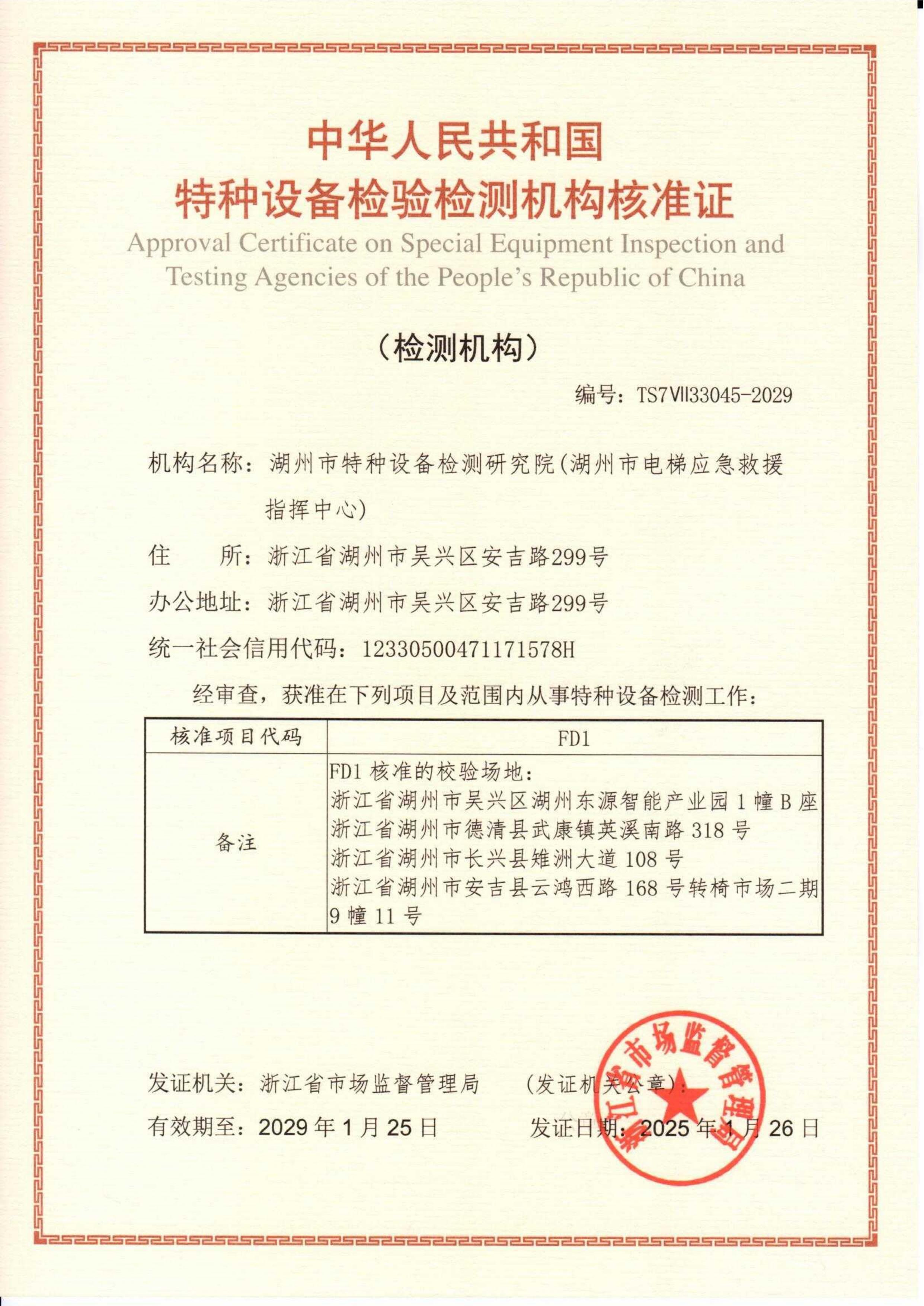 检验机构核准证(FD1)