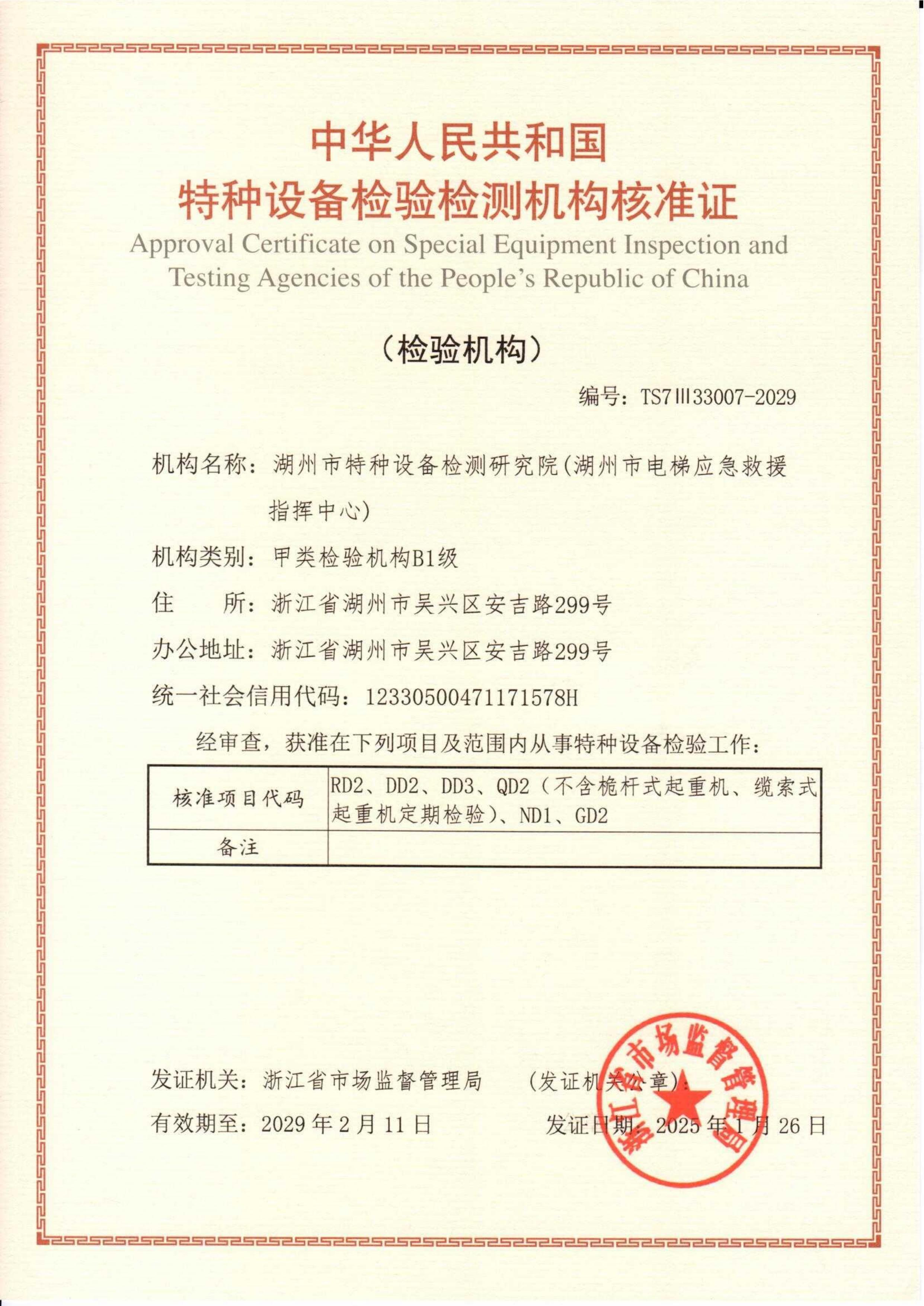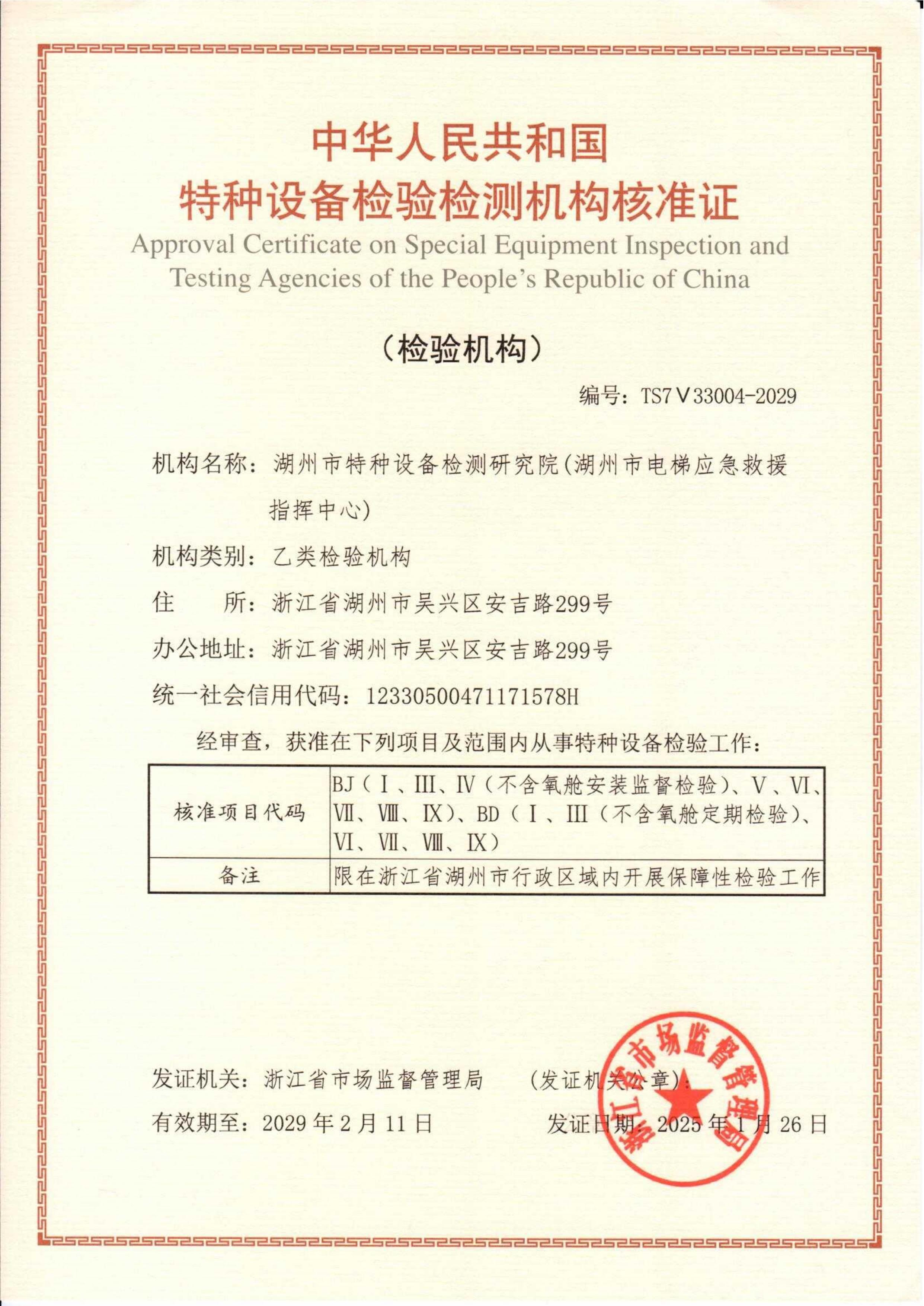 检验机构核准证(乙类)
