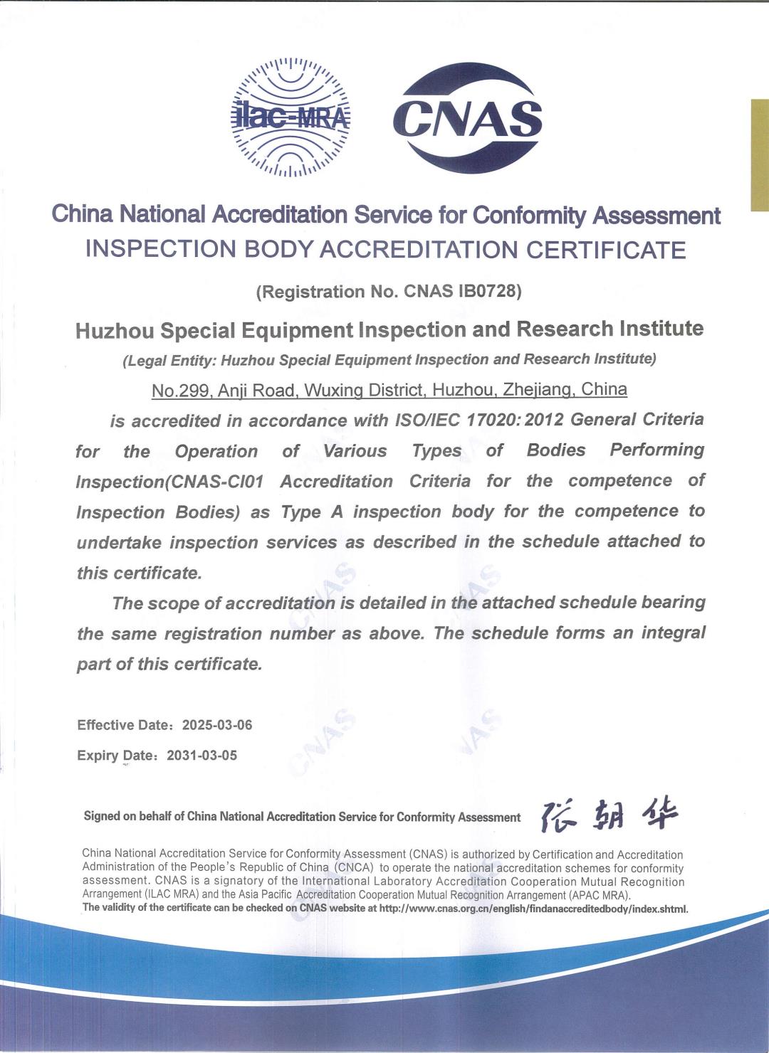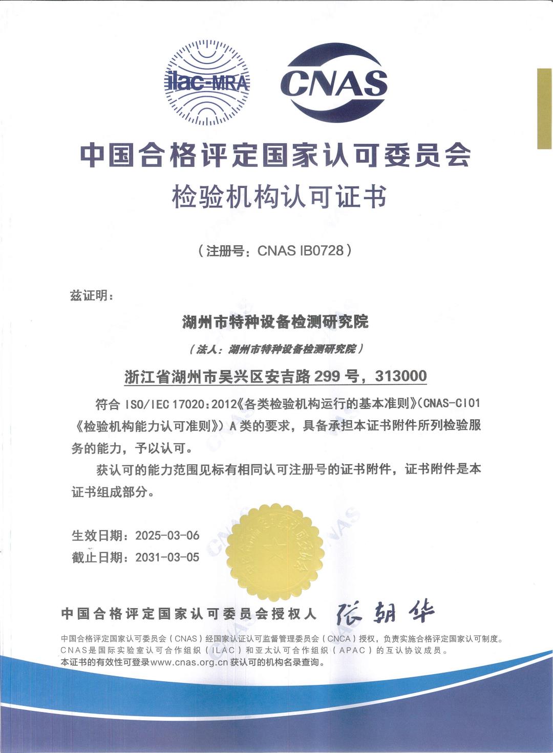 检验机构CNAS认可证书